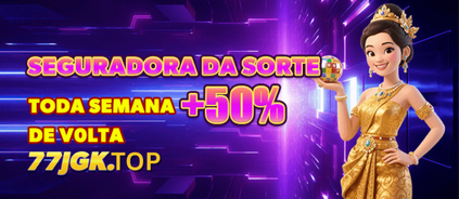 Sua diversão está protegida semanalmente em nossa plataforma. Receba +50% de volta para garantir mais chances de ganhar nos seus jogos favoritos. Saiba que o 77JGK é confiável e oferece o melhor suporte para você recuperar seu saldo.